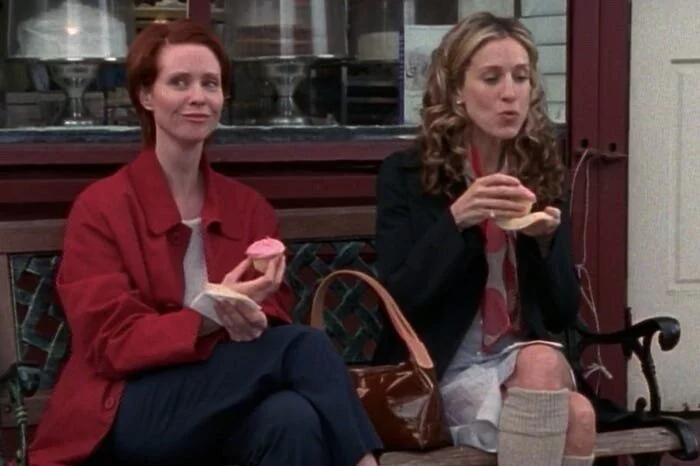 In S03E05, Carrie (Sarah Jessica Parker) and Miranda (Cynthia Nixon) are sitting outside Magnolia Bakery on Bleeker Street, stuffing their faces with pink cupcakes while they talk about Carrie's new crush, Aidan. This one scene cemented Magnolia Bakery into TV history.